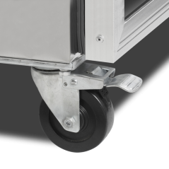 Chladicí skříň s prosklenými dveřmi:nerezový exteriér a interiér, ventilované chlazení, zámek, nastavitelné police GN 2/1, odolná kolečka,…