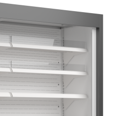 Chladicí vitrína přístěnná, posuvné dveře, bez agregátu:ventilované chlazení, posuvné dveře s šedým rámem, dvojitá izolační skla, bez…