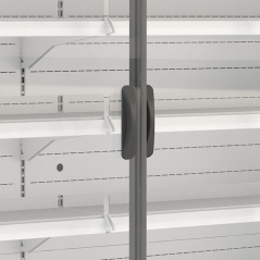 ventilované chlazení, bez vestavěného agregátu, posuvné prosklené dveře s šedým rámem, digitální termostat, automatické odtávání,…